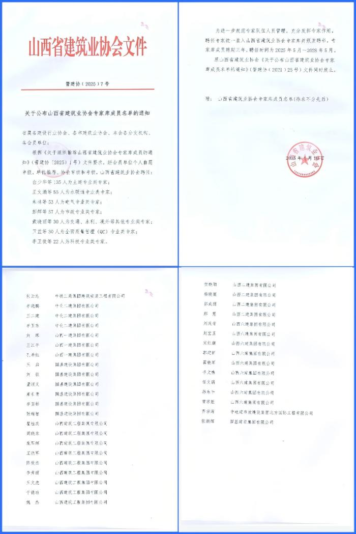 近日,我单位喜迎振奋人心的佳音——有7位专业骨干入选山西省建筑业协会专家库。这一里程碑式的成果,不仅彰显了我们在专业人才梯队建设上取得的重大突破,更大幅提升了企业在行业内的知名度和影响力,为未来高质量发展铺就了坚实跑道,注入了澎湃动能。